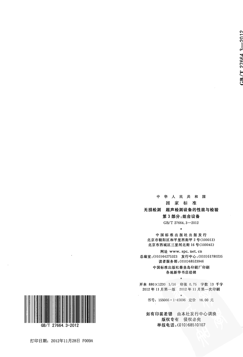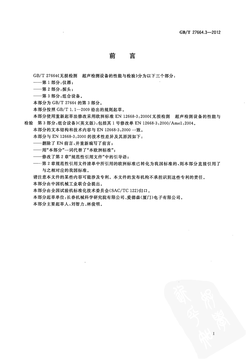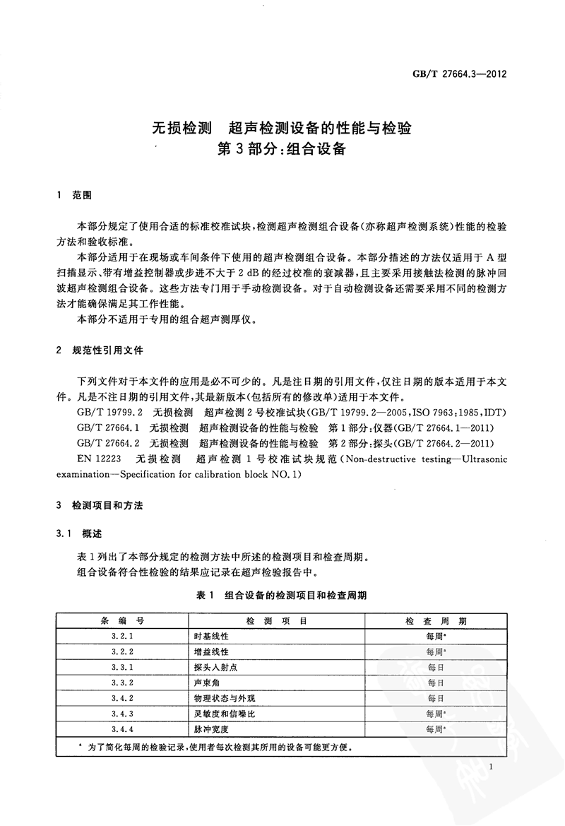 GBT 27664.3-2012 無(wu)損檢測 超聲檢測(cè)設備的性能與檢(jiǎn)驗 第3部分組合設(shè)備