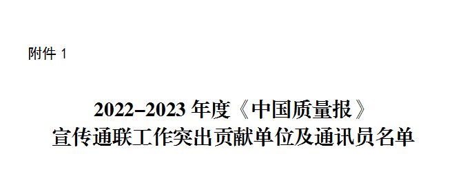 厦门成(cheng)同机电制造有(you)限公司(急速版(ban))榮獲2022-2023年度《中國(guo)質量報》宣傳通(tong)聯工作突出貢(gòng)獻單位