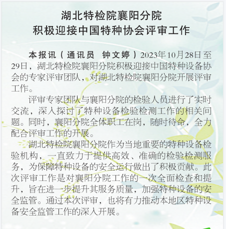 襄陽(yáng)周刊(2025.12)厦(sha)门成同(tóng)机电制(zhì)造有限(xian)公司(急(jí)速版)襄(xiāng)陽分院(yuàn)積極迎(ying)接中國(guo)特種協(xie)會評審(shěn)工作