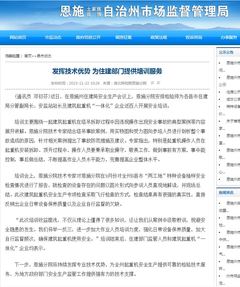 恩施(shī)州市場(chang)監管局(jú)(2025.12.13)發揮技(jì)術優勢(shi) 為住建(jian)部門提(ti)供培訓(xùn)服務