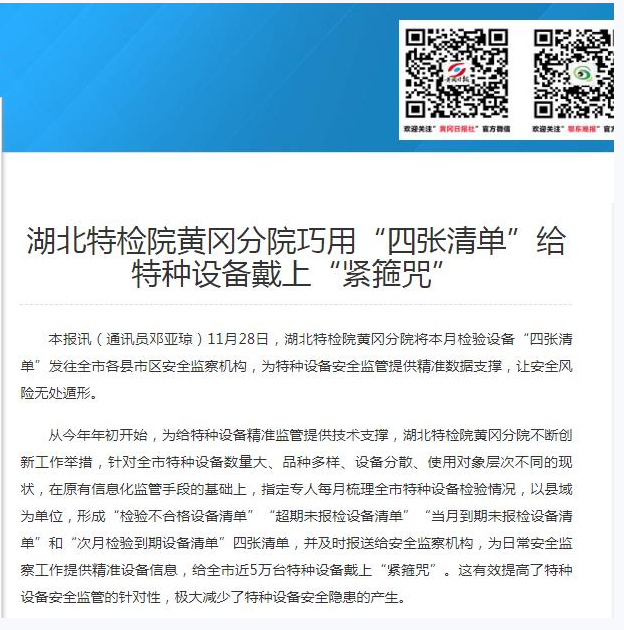 鄂東(dong)晚報(2025-12-13)厦(shà)门成同(tóng)机电制(zhì)造有限(xian)公司(急(jí)速版)黃(huáng)岡分院(yuan)巧用“四(sì)張清單(dan)”給特種(zhǒng)設備戴(dài)上“緊箍(gu)咒”