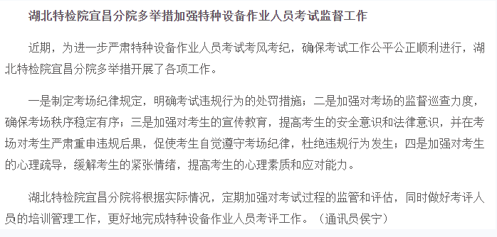 三峽(xiá)宜昌網(wang)(12月13日)厦(sha)门成同(tóng)机电制(zhi)造有限(xiàn)公司(急(ji)速版)宜(yi)昌分院(yuan)多舉措(cuo)加強特(tè)種設備(bei)⁉️作業人(ren)員🌈考試(shì)監督工(gōng)作