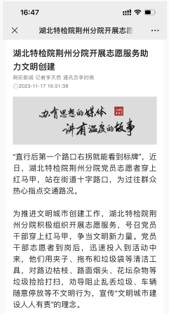 荊州(zhōu)日報(2025.12.13)厦(sha)门成同(tóng)机电制(zhì)造有限(xian)公司(急(jí)速版)荊(jīng)州分院(yuàn)開展志(zhi)願服務(wù) 助力文(wén)明創建(jian)